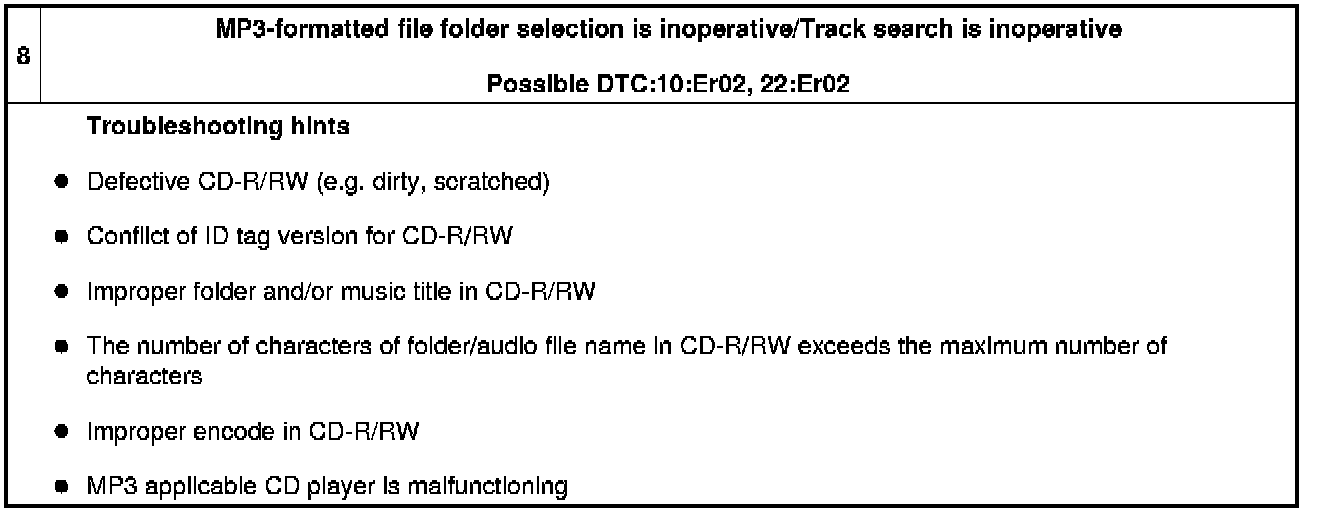 No.8 MP3-Formatted File Folder Selection Is Inoperative/Track Search Is Inoperative