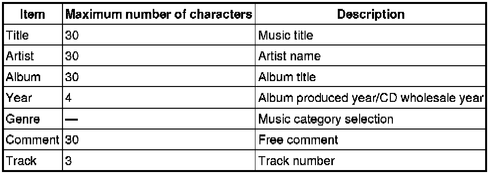 Limitation on the maximum number of characters for the text data (ID3v1)