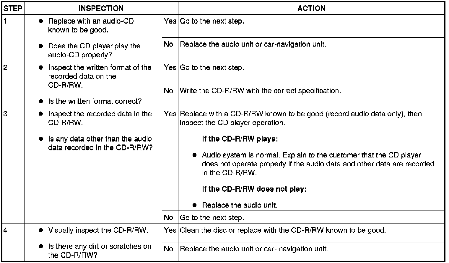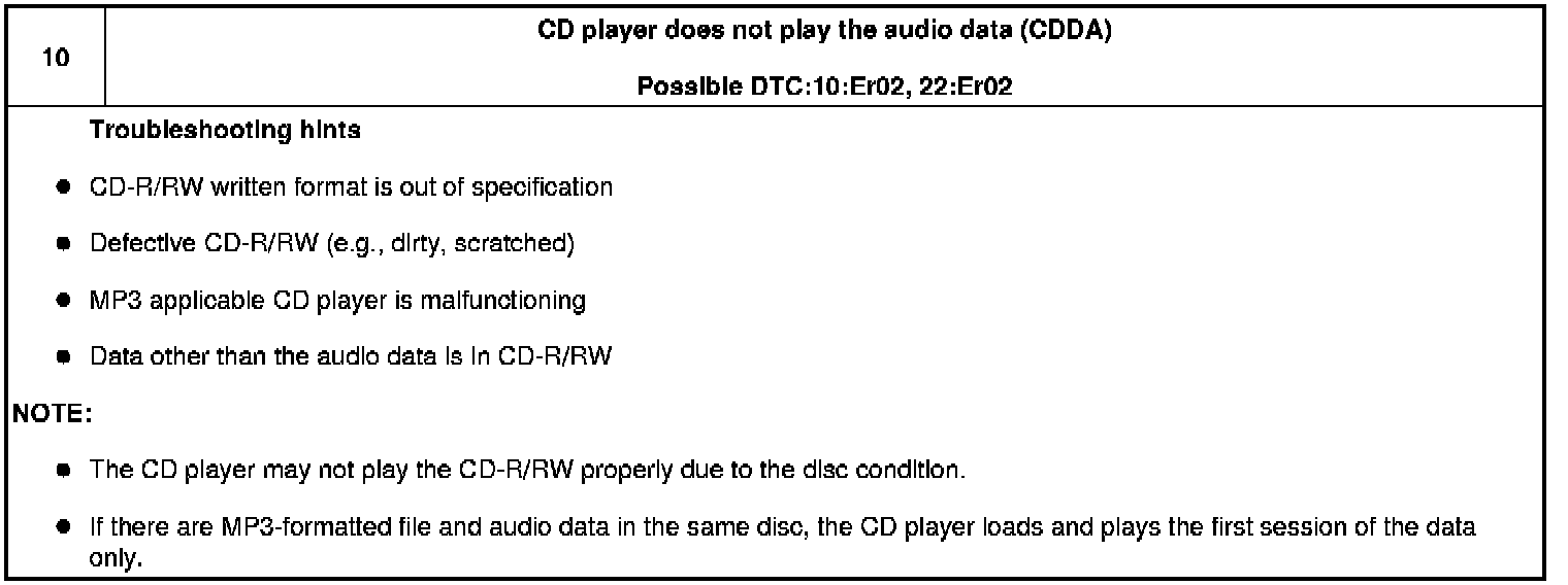 NO.10 CD PLAYER DOES NOT PLAY THE AUDIO DATA (CDDA) [CD PLAYER/CHANGER]