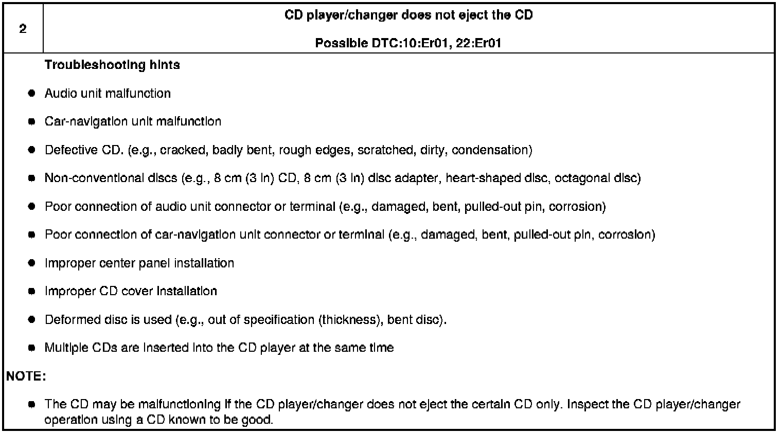 No.2 CD Player/Changer Does Not Eject The CD
