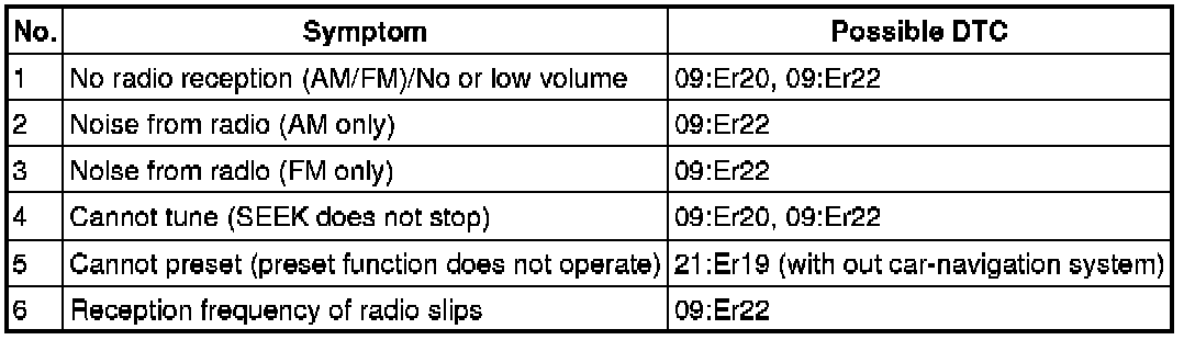 - Perform confirmation of symptom and evaluation under conditions that customer reported (location, time, broadcasting station etc.). If not possible, perform it under equivalent conditions.