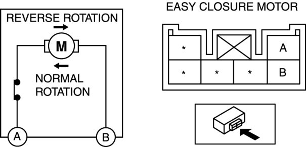 1. Apply battery positive voltage and connect the ground to the sliding door lock terminals A and B, and then inspect the sliding door lock operation.
