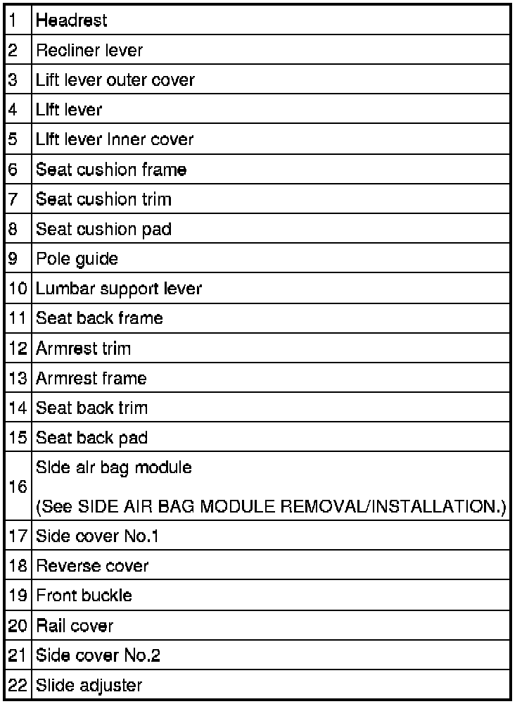 FRONT SEAT DISASSEMBLY/ASSEMBLY