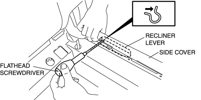 6. Remove the recliner lever clip using the following procedure.