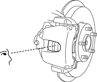 4. Replace the pads as a set (right and left wheels) if either one is at or less than the minimum thickness.