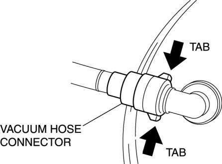 1. Disconnect the vacuum hose connector from the power brake unit while pressing the tabs of the vacuum hose connector.