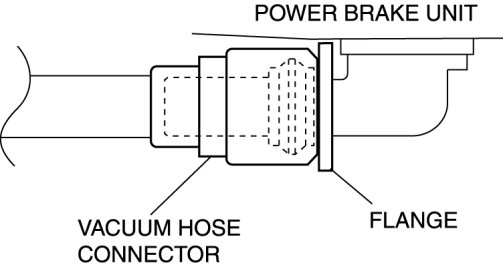 6. Verify that the vacuum hose is inserted so that the connector contacts the power brake unit flange.
