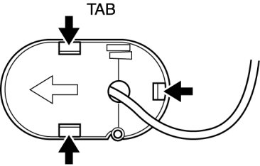 1. Install the ABS hole cover into the body so that the arrow on it is facing toward the outer side of the vehicle.