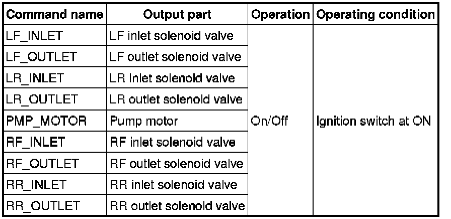 - If the operation of output parts cannot be verified after the active command mode inspection is performed, this could indicate the possibility of an open or short circuit, sticking, or operation malfunction in the output parts.