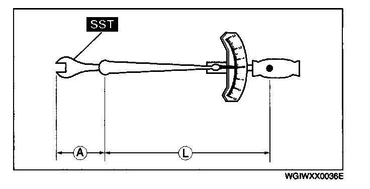 ^ When using a torque wrench-SST or equivalent combination, the written torque must be recalculated due to the extra length that the SST or equivalent adds to the torque wrench. Recalculate the torque by using the following formulas. Choose the formula that applies to you.
