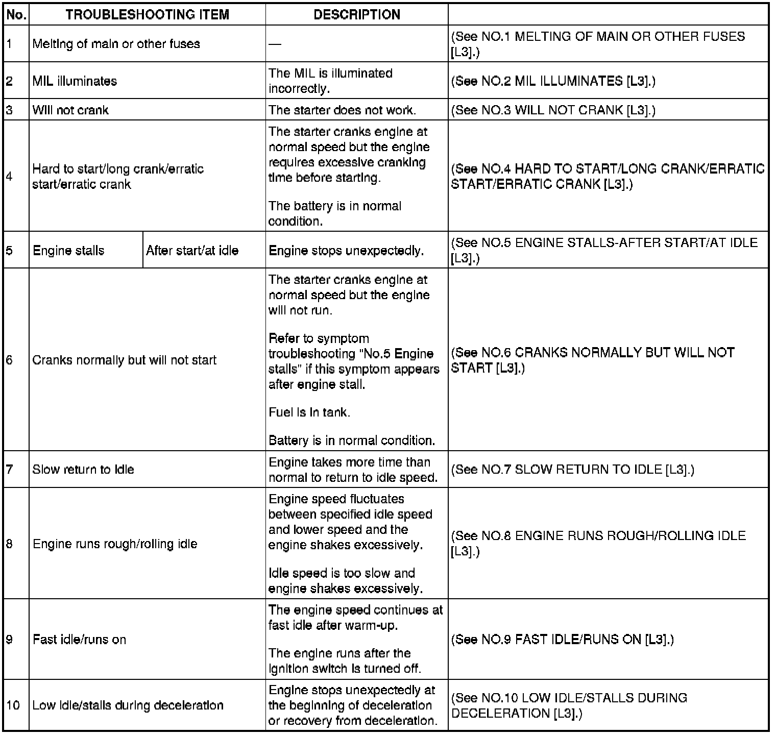 Confirm trouble symptom using the following diagnostic index, then go to appropriate troubleshooting chart.