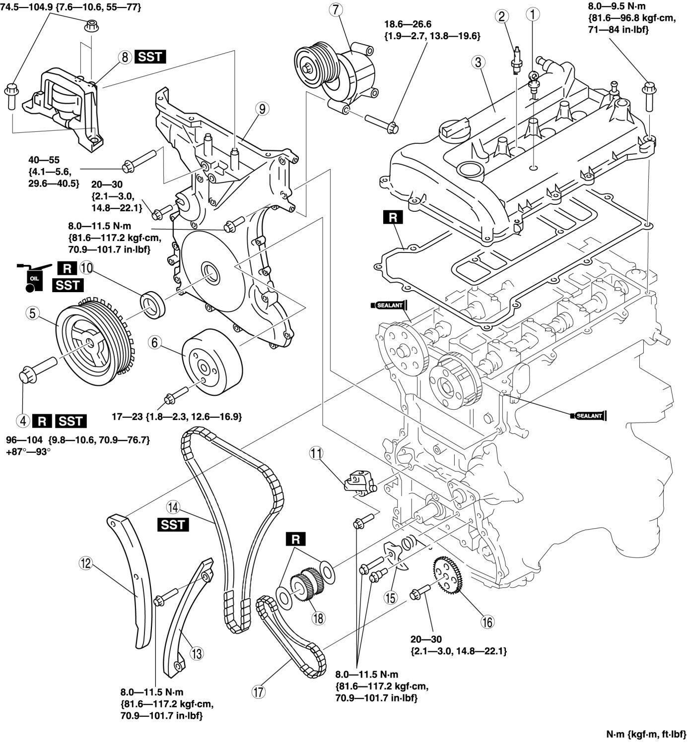 - Install the engine front cover within 10 min of applying the silicone sealant.