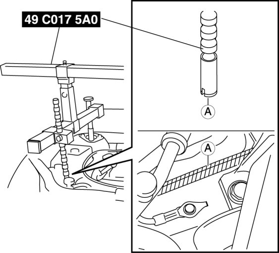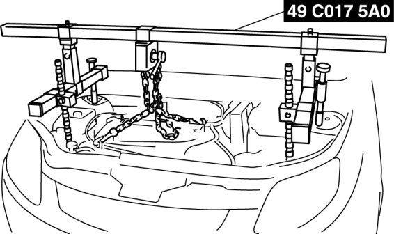 a. As shown in the figure, set the rear shafts of the SST to the left and right shock absorber bolts.