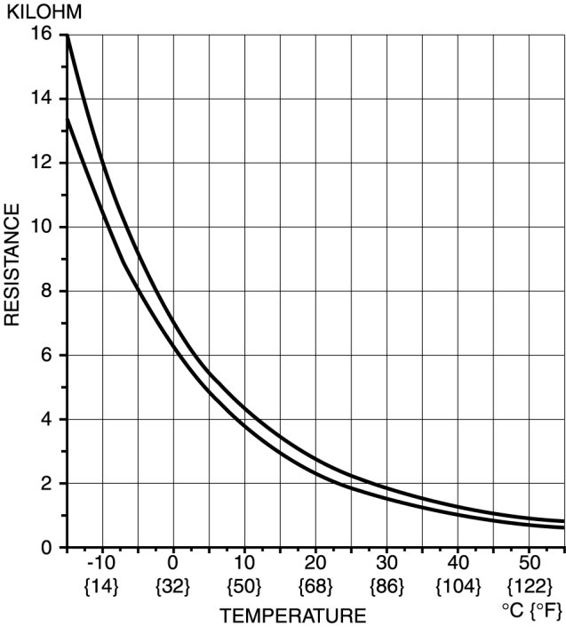 - If the characteristics of the ambient temperature sensor are not as shown in the graph, replace the ambient temperature sensor.