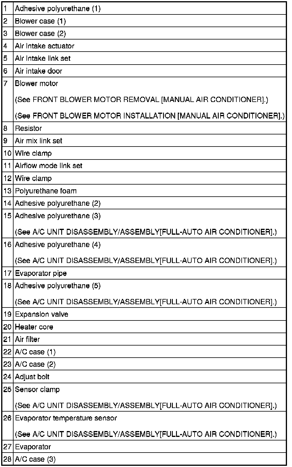 A/C Unit Disassembly/Assembly [Manual Air Conditioner]