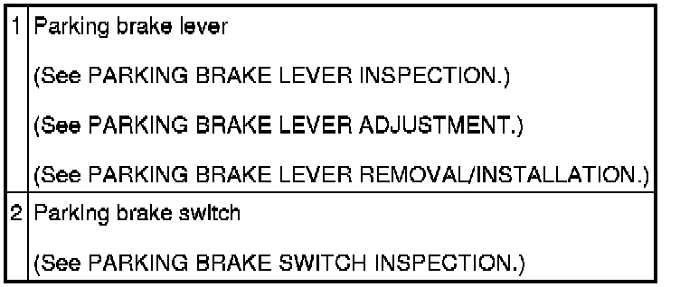 PARKING BRAKE SYSTEM LOCATION INDEX