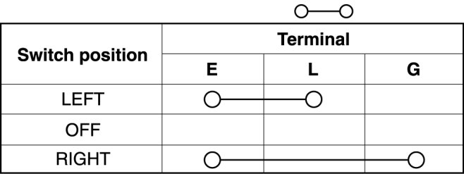 Verify that the continuity between the light switch terminals is as indicated in the table.