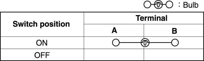 Verify that the continuity between the cargo compartment light terminals is as indicated in the table.