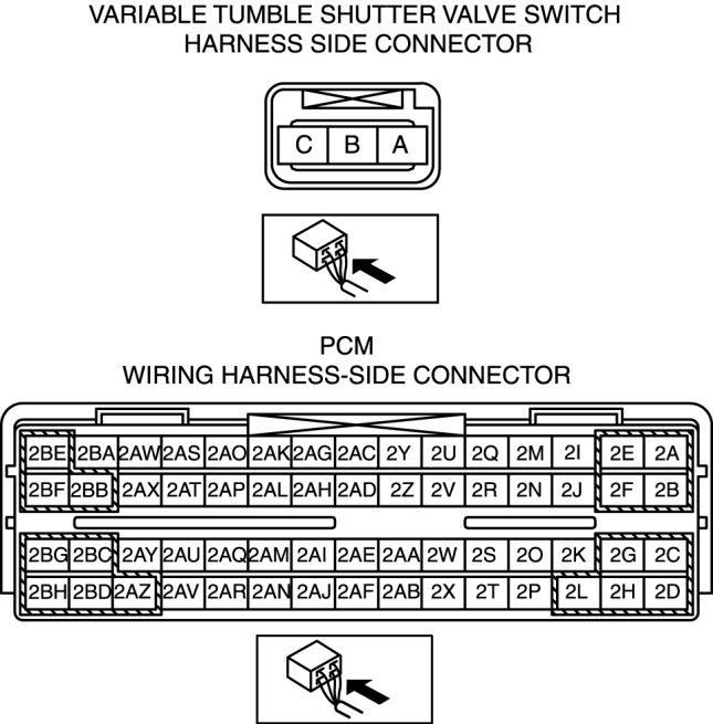 - Variable tumble shutter valve switch terminal C and PCM terminal 2AE
