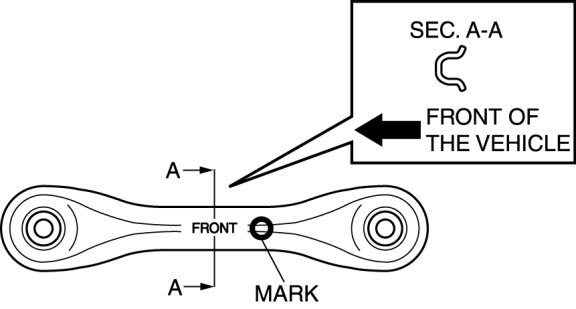 1. Install the rear lateral link with "FRONT" facing the vehicle front and the painted mark facing the inside of the vehicle.