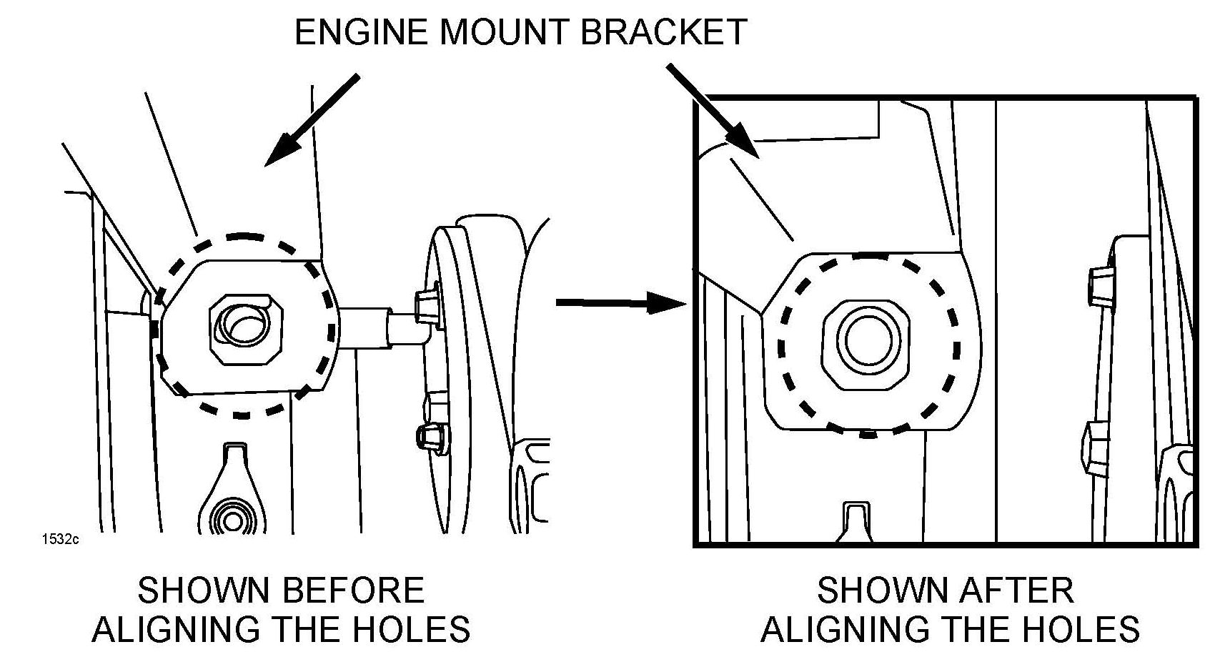 ^ Do not allow the engine mount bracket to be misaligned.