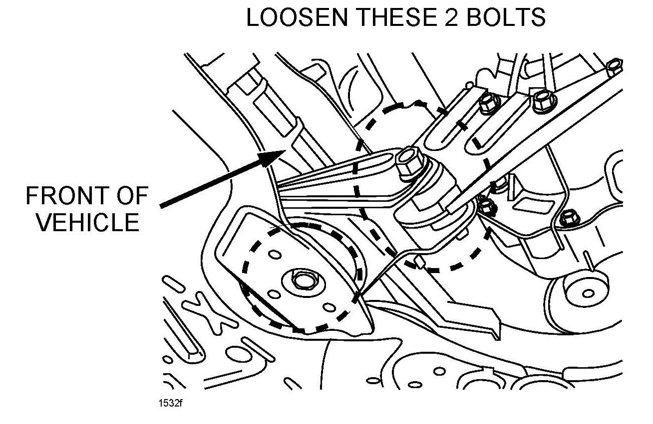 14. Lift engine again using jack and loosen the two bolts on the No.1 engine mount rubber until slightly loose on the No.1 engine mount rubber.
