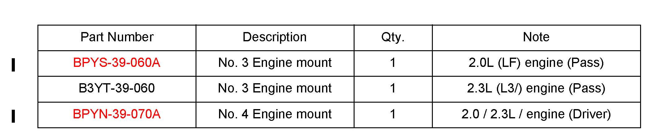 2. Replace the No.3 and 4 engine mounts with service parts according to MS3 online instructions or Workshop Manual section 01-10 ENGINE REMOVAL/INSTALLATION.