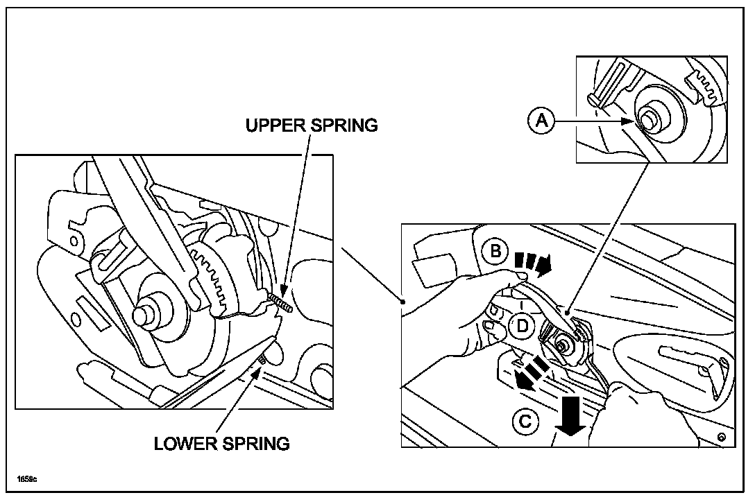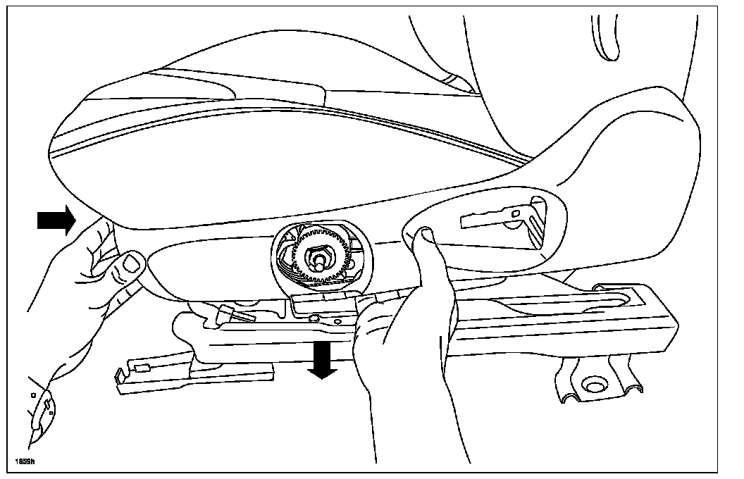 c. Release finger from the moving part of the lock plate, then flip down the hook and allow it to engage with the gear.