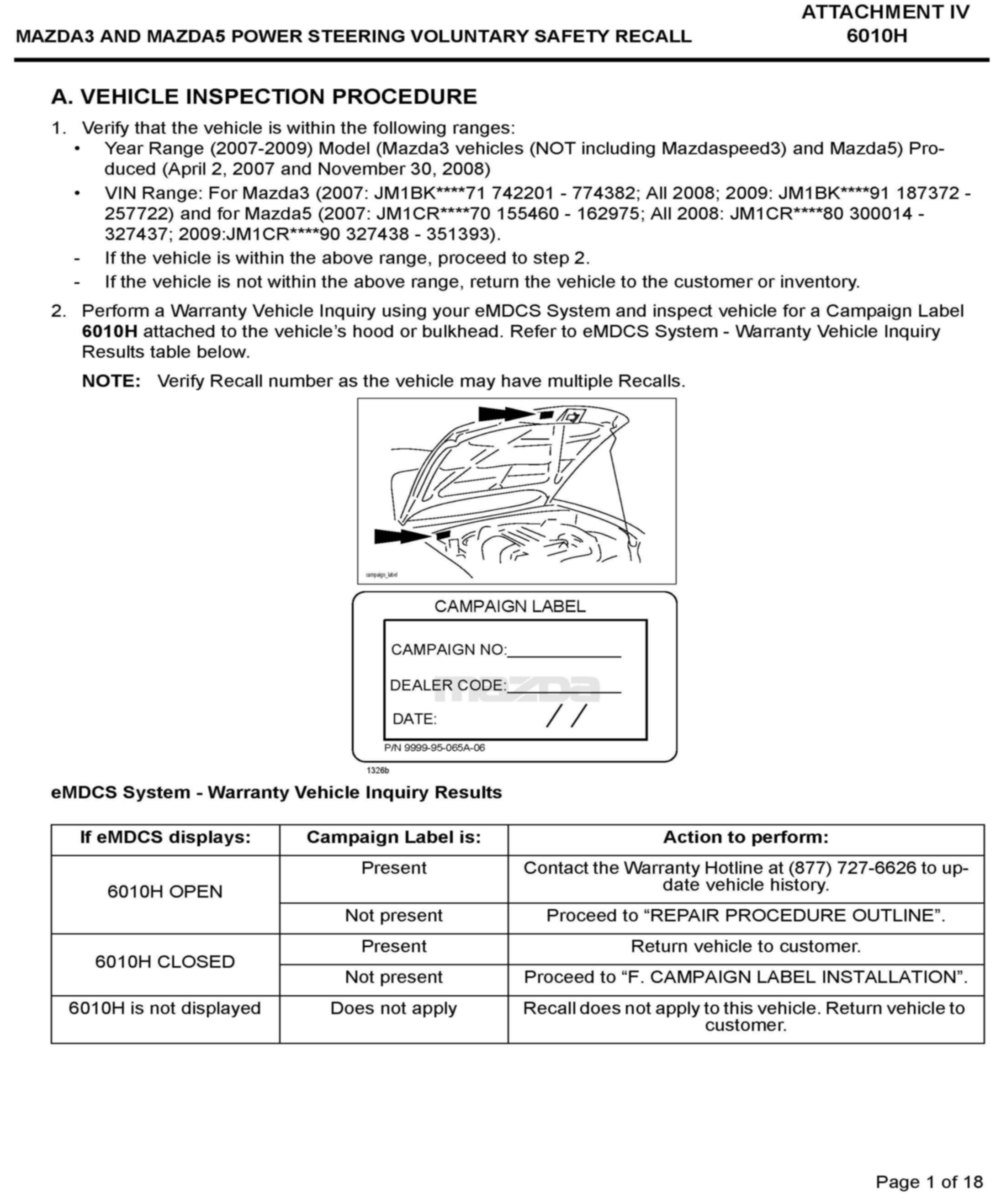 A. VEHICLE INSPECTION PROCEDURE