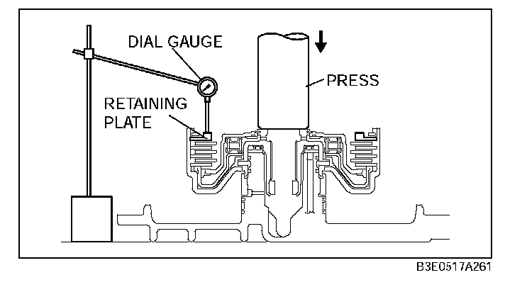 5) Release the compressed air and read the dial gauge when the 3-4 clutch piston is not operating.