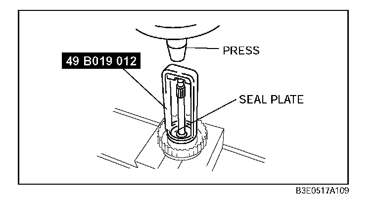 Caution: Depress the seal plate only enough to remove the snap ring. Overpressing will damage the seal plate assembly edges.