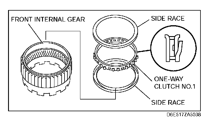 2. Install the one-way clutch No.1 to the front internal gear in the direction of the arrow (on the one-way clutch) as shown in the figure.