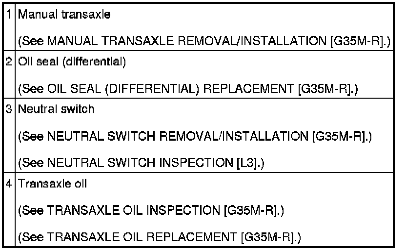 MANUAL TRANSAXLE LOCATION INDEX [G35M-R]