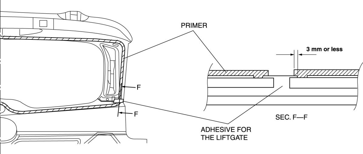 - To prevent poor adhesion to the glass, apply primer and avoid the application area of the adhesive for the liftgate.