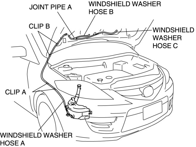 6. Disconnect windshield washer hose B from the washer nozzle.