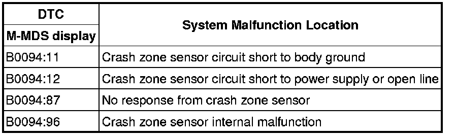 DTC B0094:11/B0094:12/B0094:87/B0094:96