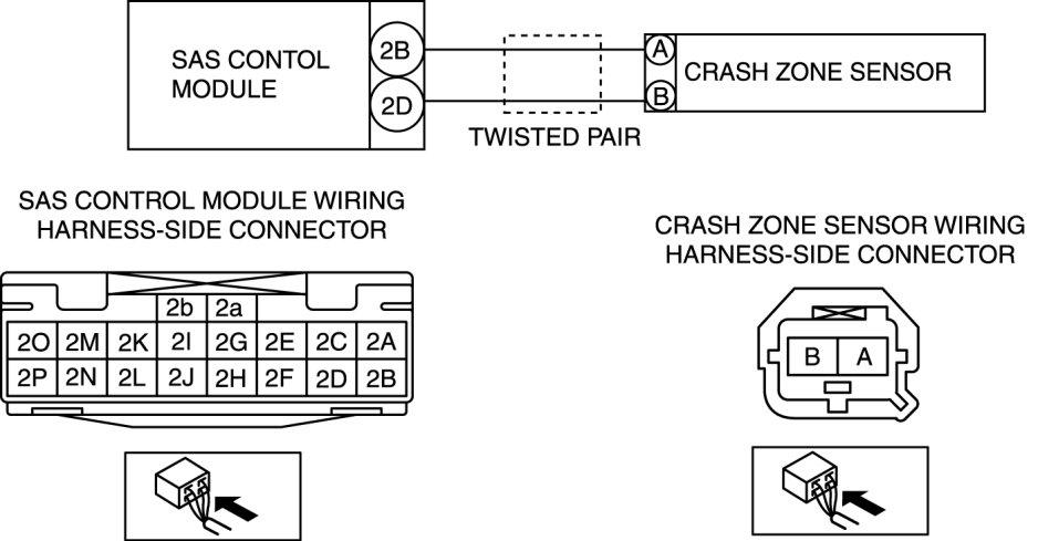 - Malfunction in the wiring harness between the crash zone sensor and SAS control module