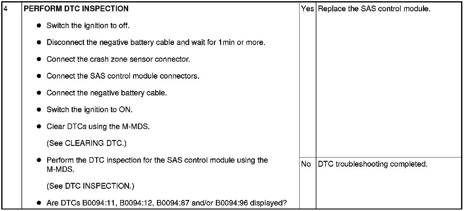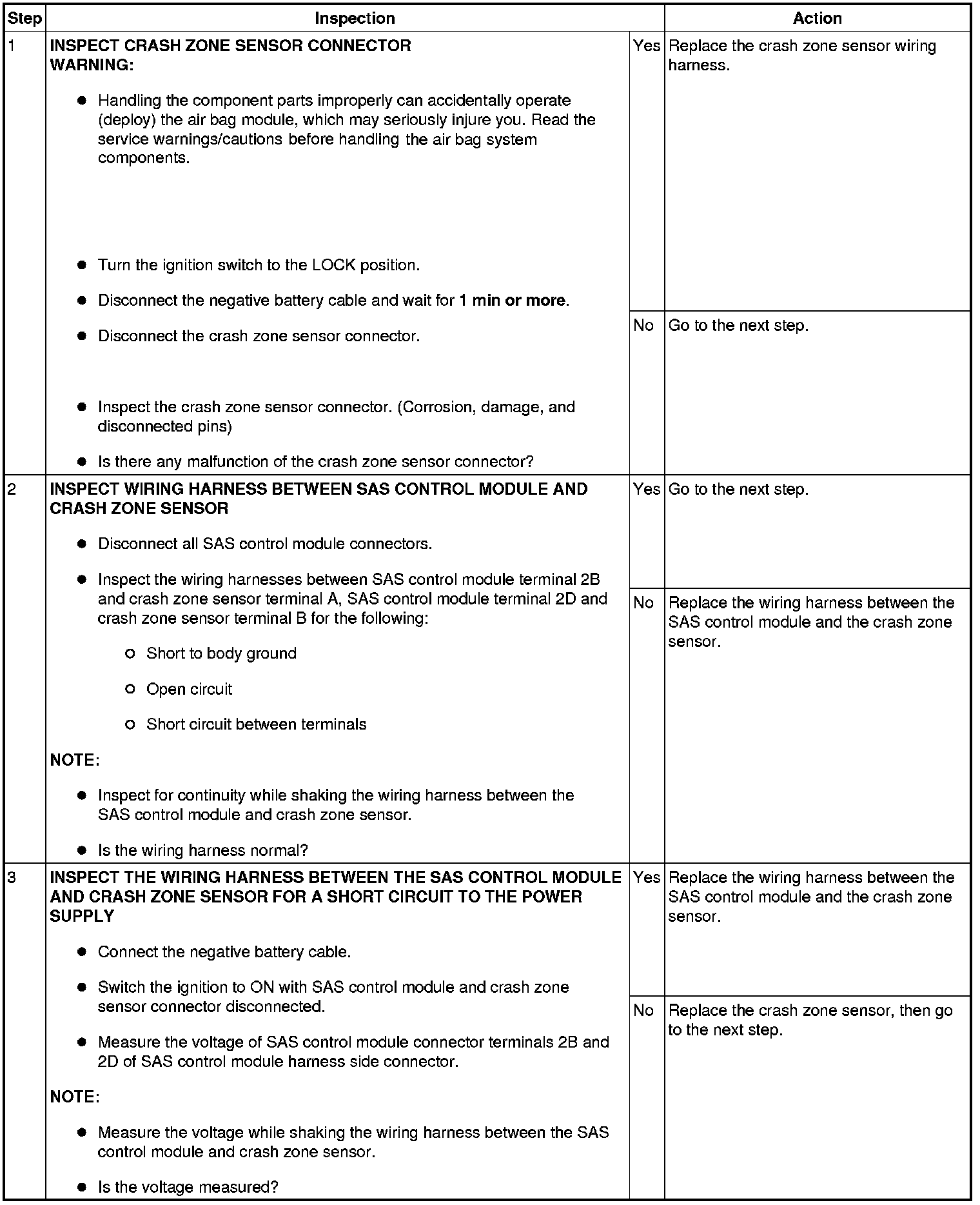 - Open or short circuit or short to ground or short to power supply in the wiring harness between the crash zone sensor and SAS control module