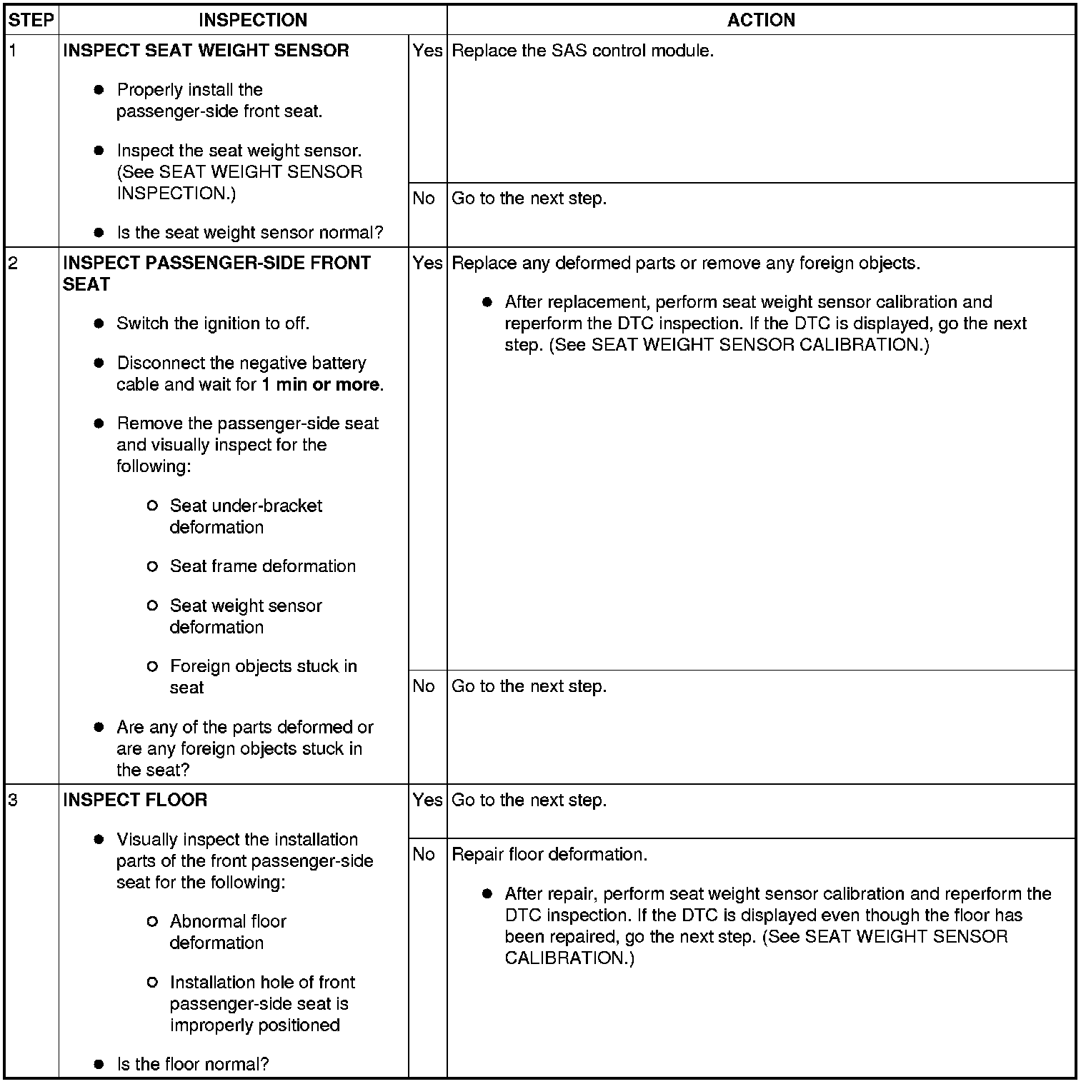 - Seat weight sensor deformed or malfunction