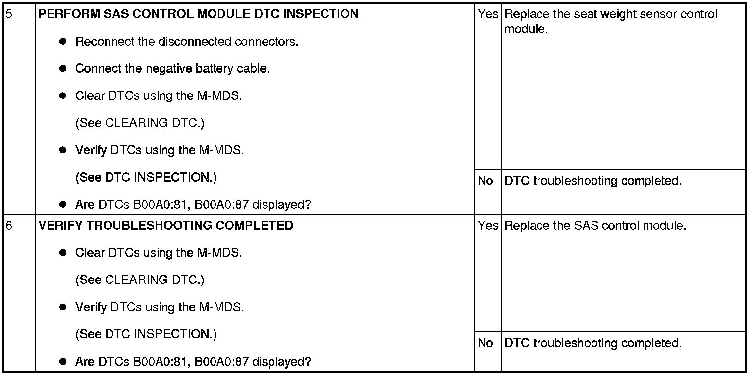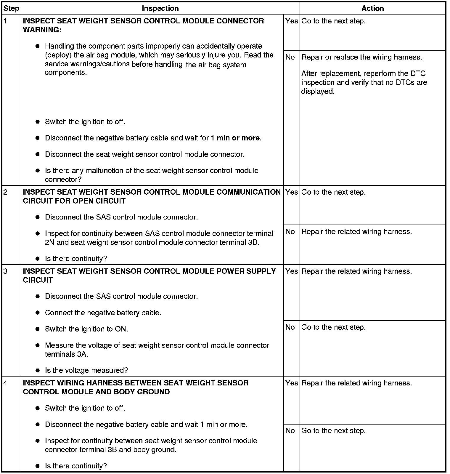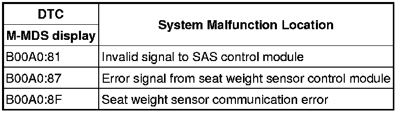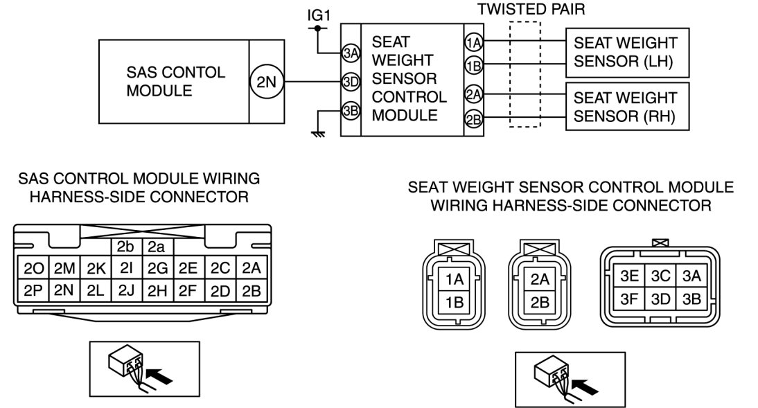 - Open circuit in wiring harness between seat weight sensor control module and SAS control module