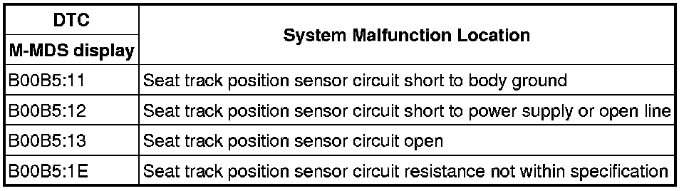 - Malfunction in seat track position sensor circuit.