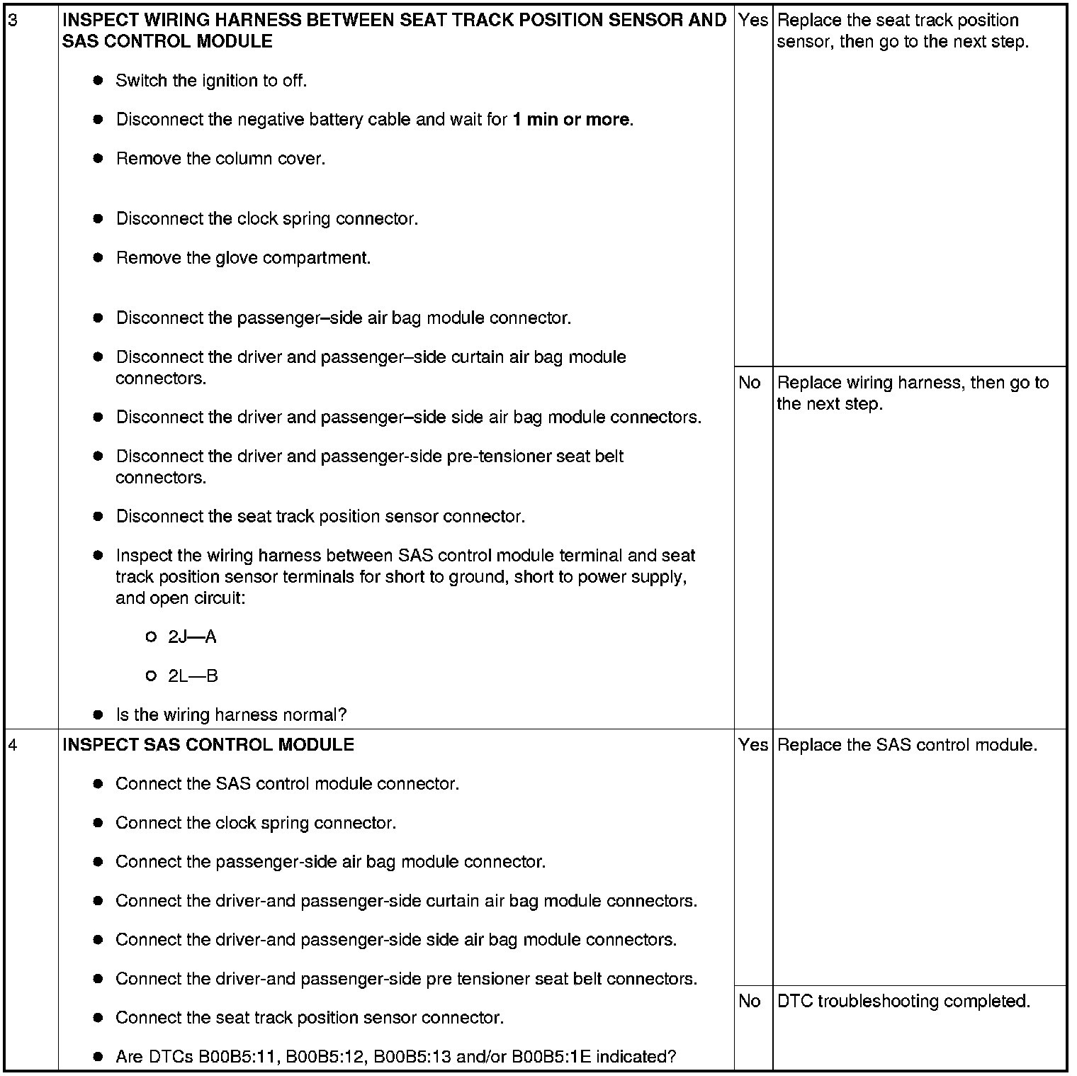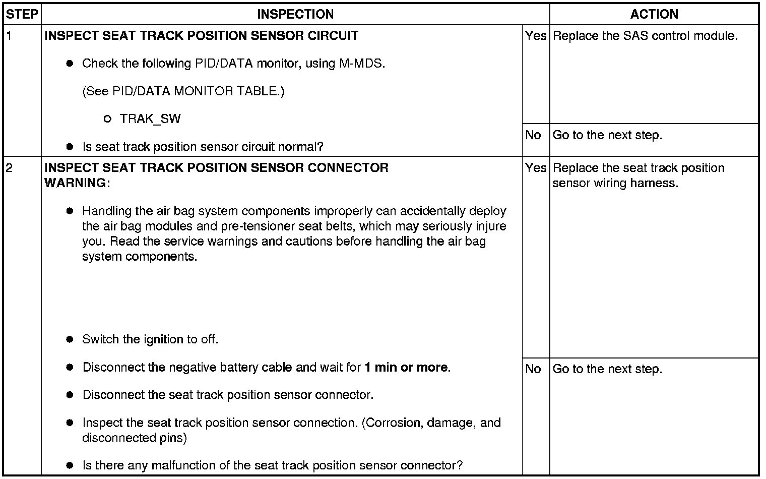 - Malfunction of connector between seat track position sensor and SAS control module.
