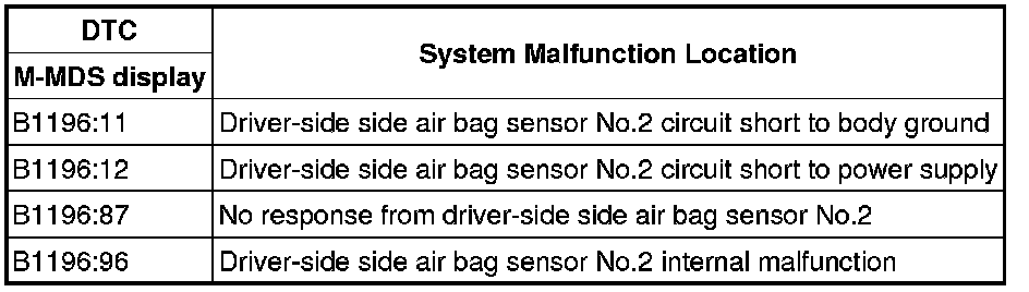 - Driver-side side air bag sensor No.2 has a malfunction.