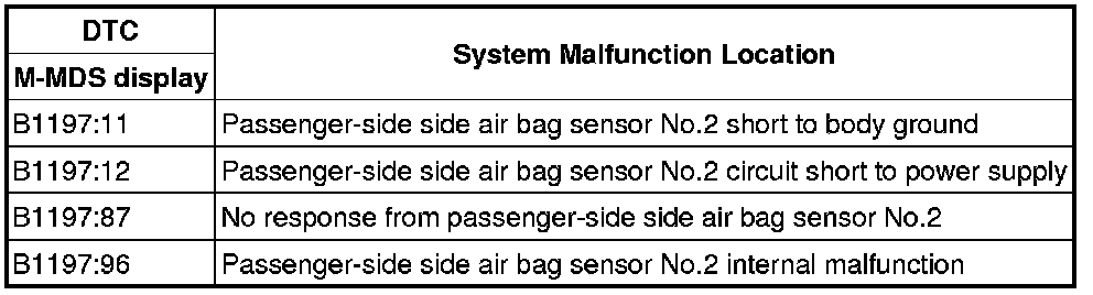 - Passenger-side side air bag sensor No.2 malfunction