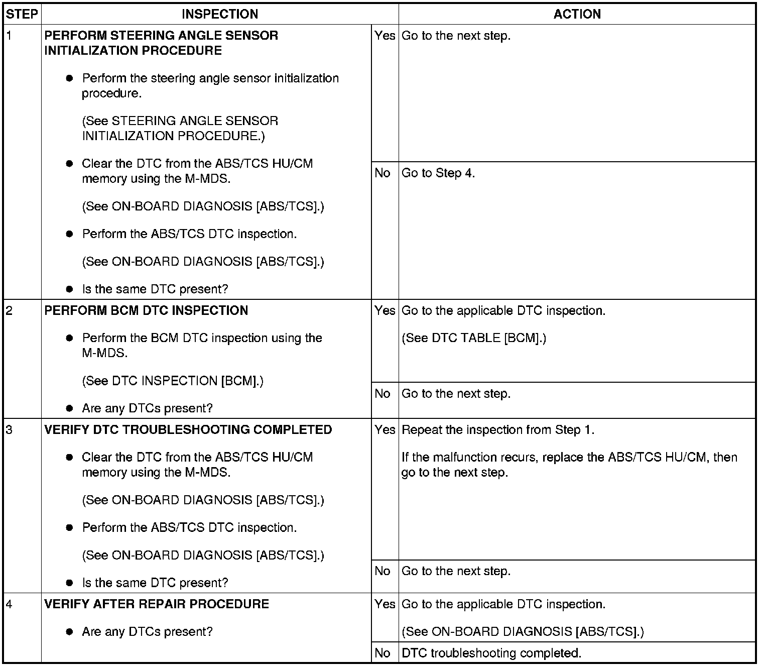 - Wiring harness disconnection between battery, BCM connector, steering angle sensor connector
