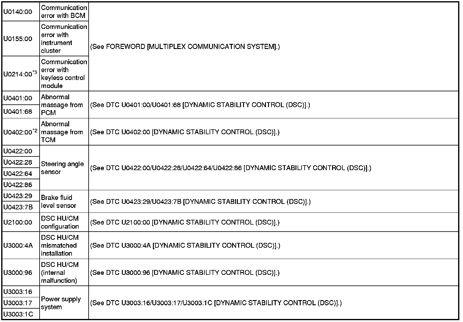 DTC Table [Dynamic Stability Control (DSC)]