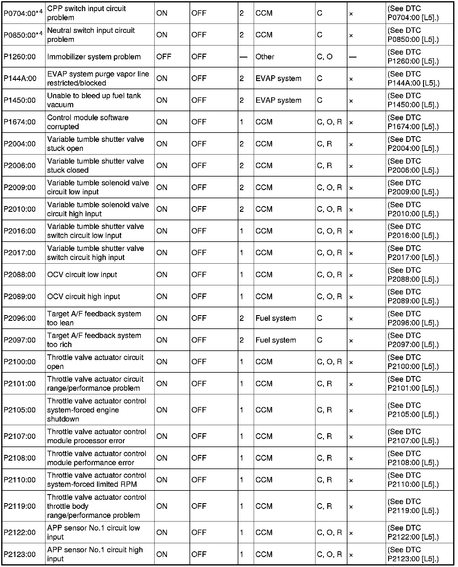 DTC TABLE [L5]