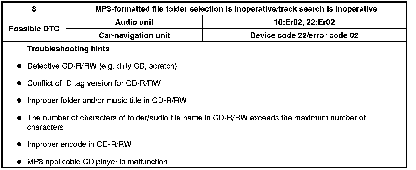 No.8 MP3-Formatted File Folder Selection Is Inoperative/Track Search Is Inoperative