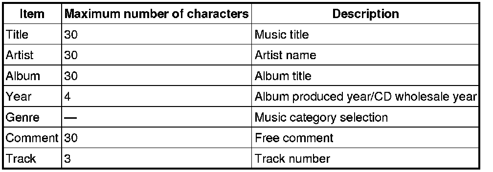 Limitation on the maximum number of characters for the text data (ID3v1)