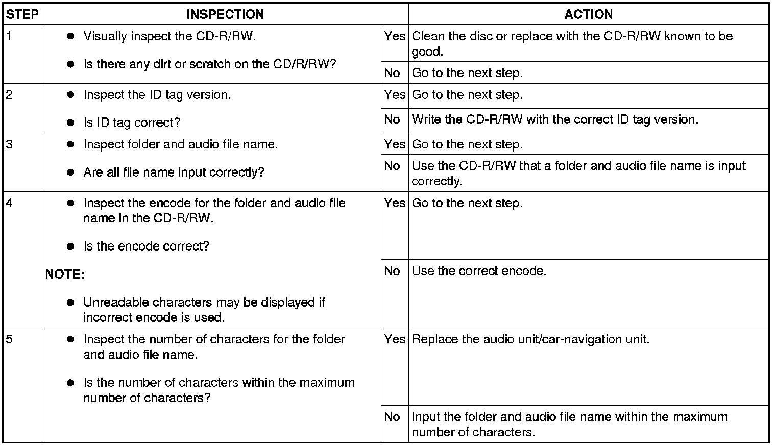 NO.8 MP3-FORMATTED FILE FOLDER SELECTION IS INOPERATIVE/TRACK SEARCH IS INOPERATIVE [CD PLAYER/CHANGER]